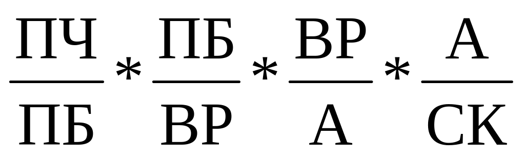 Рассчитывается влияние факторов на изменение коэффициента устойчивости экономического роста с использованием четырехфакторной мультипликативной модели по формуле: