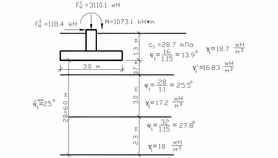 - •Пример 14. Расчет основания фундамента на глубинный сдвиг.