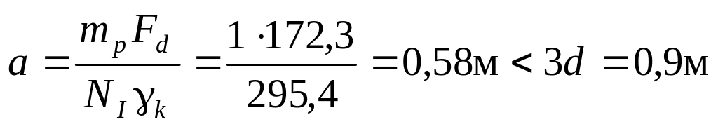 Принимаем шаг свай 1,2 м. Расстояние от края ростверка до наружной грани сваи: