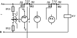 Показання вимірювальних приладів, включених у вторинне коло вимірювального трансформатора напруги, необхідно множити на його коефіцієнт трансформації. |