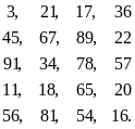 Первая таблица чисел состоит из одной строки. Вторая и третья таблицы состоят из строк и столбцов чисел. Так во второй таблице две строки и 7 столбцов.