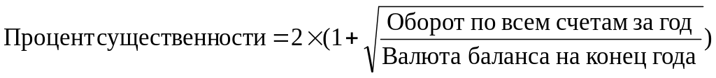 Процент существенности, учитывающий обороты и сальдо по счетам определяется по формуле:
