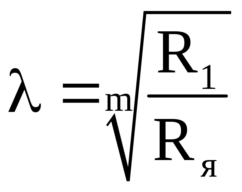 Значення опорів ступенів: R3=Rя(l-1), R2=Rя×l(l-1), R1=Rя×l2(l-1).