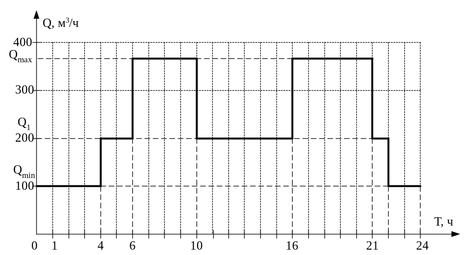 3. Здійснити моделювання режимів роботи насосної установки при добовому графіку водопостачання.