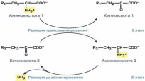 Схема обоих этапов трансдезаминирования.