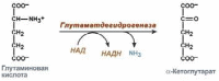 Реакция прямого окислительного дезаминирования глутаминовой кислоты.