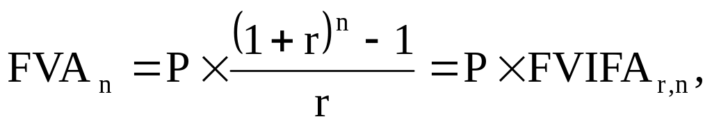 Будущая стоимость обыкновенного аннуитета (FVAn) рассчитывается по формуле