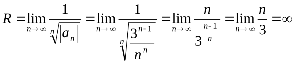 Найдем радиус сходимости, применяя обратный признак Коши::