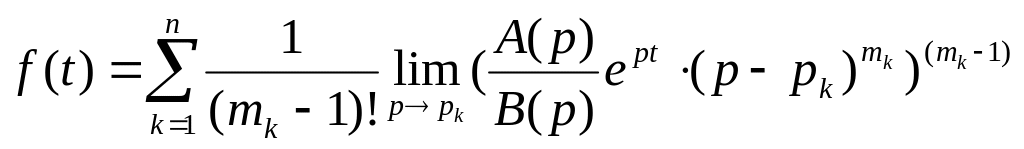 Теорема 2.3. Если изображение является дробно-рациональной функцией от и - простые или кратные полюсы этой функции, то оригинал , соответствующий изображению , определяется формулой