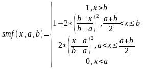 Нехай експерт визначає товщину виробу, за допомогою поняття «маленька товщина», «середня товщина» і «більша товщина», при цьому мінімальна товщина рівняється 10 мм, а максимальна – 80 мм.