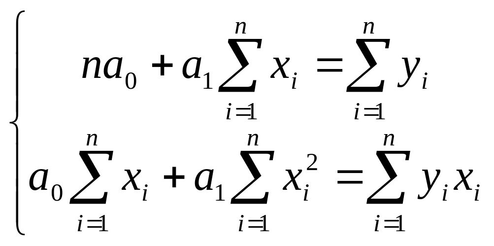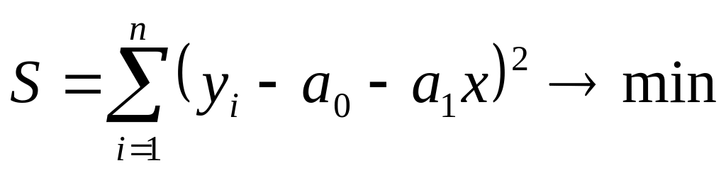 Согласно требованию МНК при линейной зависимости в формуле вместо записываем его конкретное выражение: а0 + а1 х . Тогда
