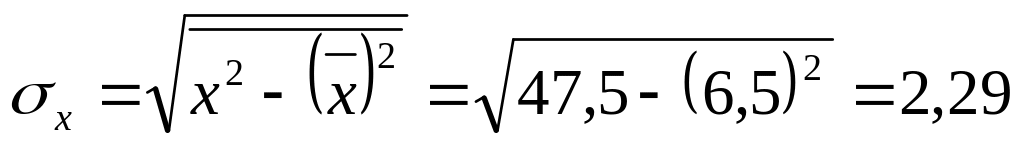 Рассчитаем сначала средние квадратичные отклонения, используемые в формуле коэффициента корреляции: