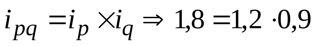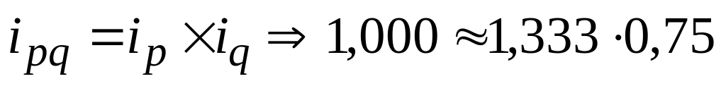 Взаимосвязь (действует при условии, что индекс Iр найден по методике Пааше): между индексами: