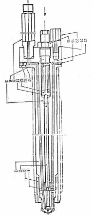 Форсунка ГД состоит из: 1 – корпус форсунки; 2 – толкатель; 3 – гайка затяжки распылителя; 4 – втулка толкателя нижняя; 5 – втулка толкателя верхняя; 6 – регулировочный винт; 8 – штуцер; 10 – игла распылителя; 11 – держатель пружины (нижний); 12 – пружина; 14 – прокладка; 15 – стопорная гайка; 16 – заглушка; 17 – стальной шарик; 18 – заглушка; 19 – кокса; 20 – штуцер (водяного охлаждения); 21 – прокладка; 22 – держатель пружины (верхний).