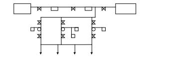 1. морской ящик донный 2. запорный клапан двухходовой 3. пожарный насос правого борта 4. пожарный насос левого борта 5. аварийный пожарный насос 6. местный пульт управления пож.насоса левого борта 7. пульт управления с ходового мостика пож.насоса левого борта 8. местный пульт управления пож.насоса правого борта 9. местный пульт управления аварийным пож.насосом 10. Подача воды на пожарные краны МКО 11. подача воды на пожарные краны жилой надстройки 12. подача воды на пожарные краны главной палубы 13. подача воды на пожарные краны трюмных помещений 14 фильтр 15 морской ящик бортовой