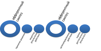 До того как целенаправленное поведение начнет осуществляться, развивается стадия программы действия или эфферентного синтеза. На этой стадии происходит интеграция соматических и вегетативных возбуждений в целостный поведенческий акт. На этой стадии действие ментально уже сформировано, но внешне оно еще не реализуется. На следующей стадии эфферентное возбуждение достигает исполнительных механизмов, и действие осуществляется (целенаправленное действие).
