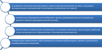 Основной целью психорегуляции является формирование особого психического состояния, способствующего наиболее полному использованию спортсменом своего потенциала, накопленного на тренировках.65