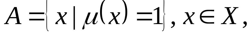 В данном случае функция принадлежности : ставит в соответствие каждому элементу число из интервала [0;1], описывающее степень принадлежности элемента множеству А. Заданное таким образом множество пар