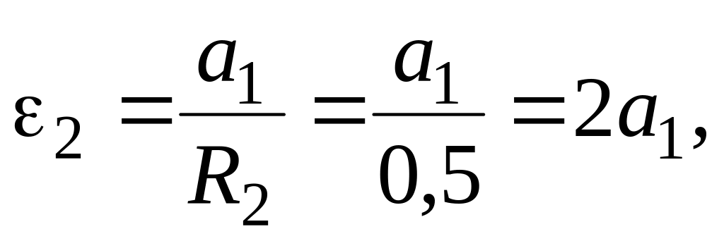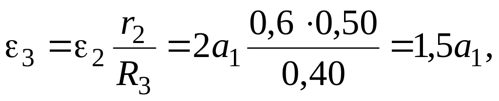 3. Произведем кинематический расчет: выразим угловые ускорения тел 2, 3 и 4 и ускорение т. С через ускорение а1. Покажем на рисунке эти ускорения.