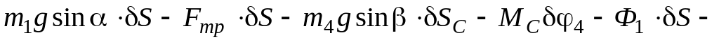 6. Данная механическая система имеет одну степень свободы. Дадим системе одно возможное перемещение δS тела 1 в сторону его движения и определим элементарные перемещения других тел.