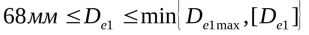 Внешний диаметр De1 меньшей звездочки должен быть в пределах [4, с.104]: