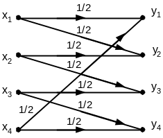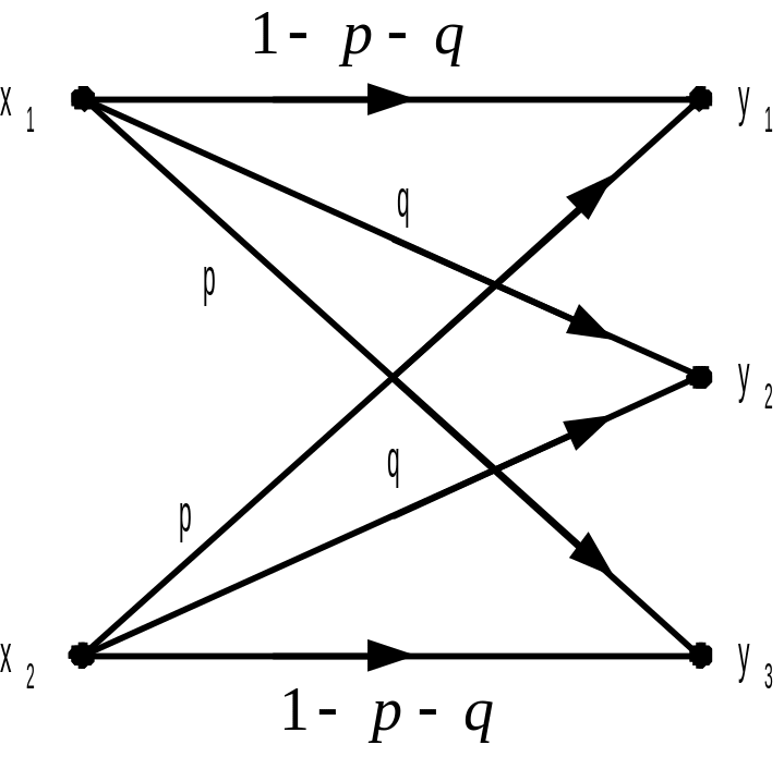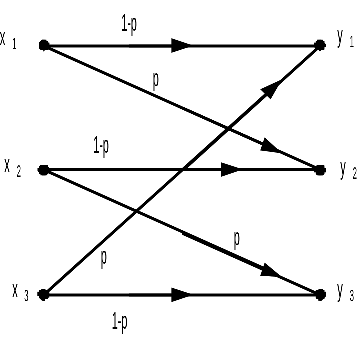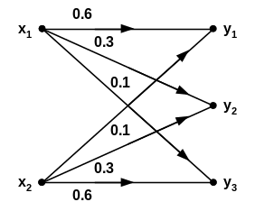 Определите пропускную способность канала (рис.1.1). Символы на входе канала считать равновероятными.