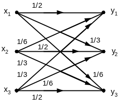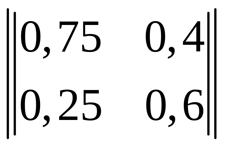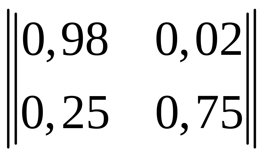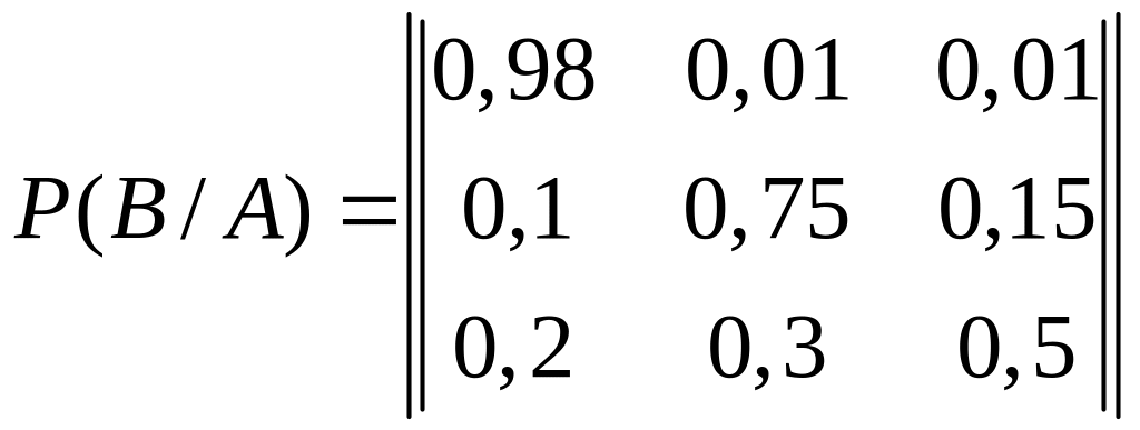 Дискретная последовательность символов, выдаваемых источником, описывается простой цепью Маркова с матрицей переходных вероятностей: