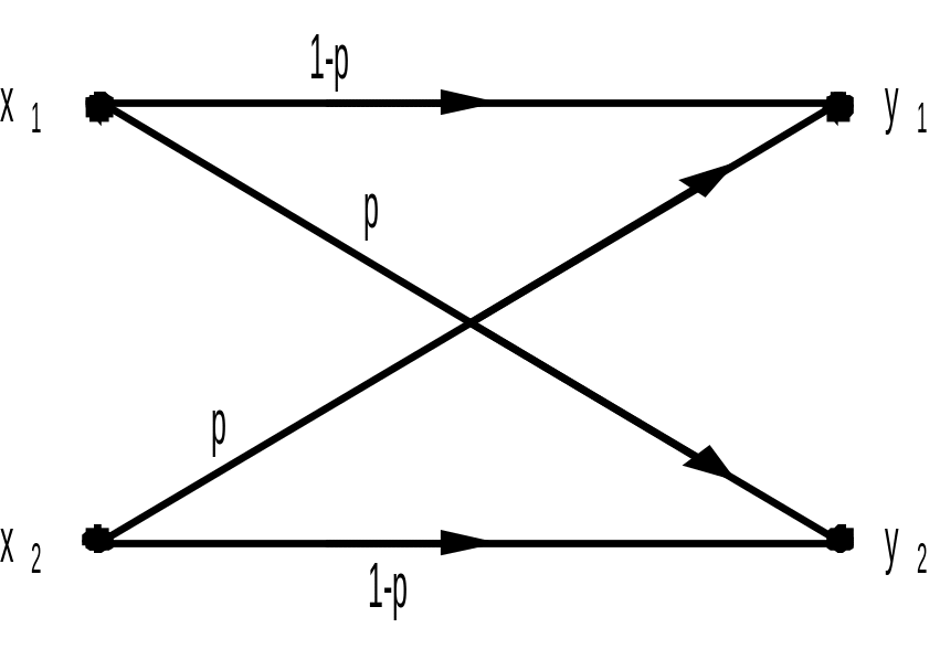 Определить пропускную способность дискретного бинарного канала, способного передавать 100 символов «0» или «1» в единицу времени, в котором в результате действия помех 5% сообщений не соответствуют переданным.