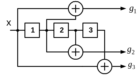 Нарисуйте схему кодера по следующим параметрам: скорость кода