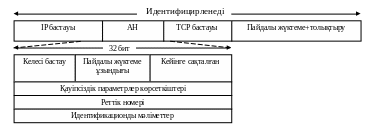 Жаңа бастаулардың алғашқысы идентификация бастауы (AH – Authentication Header) деп аталады. Оның көмегі арқылы мәліметтер бүтіндігін тексеруге және берілудің қайталану әдісі арқылы қорғауға болады. Алайда оның құпиялылыққа ешқандай қатысы жоқ. АН-ті транс-порттық режимде қолдану 8.23 суретінде көрсетілген. IPv4 стандартында ол IP(барлық мін-детті емес өрістермен қоса ) бастауы және ТСР бастауы арасына орналасқан. IРv6-да ол әлі қа-рапайым қосымша бастау. Ол солай-ақ қабылданады. АН форматы IРv6 қосымша бастау форматына шынымен де жақын. Кейде тиімді жүктемеге белгілі бір ұзындықты алу үшін тол-тыруларды қосады, ол алгоритм идентификациясына қажет. Ол суретте көрсетілген.