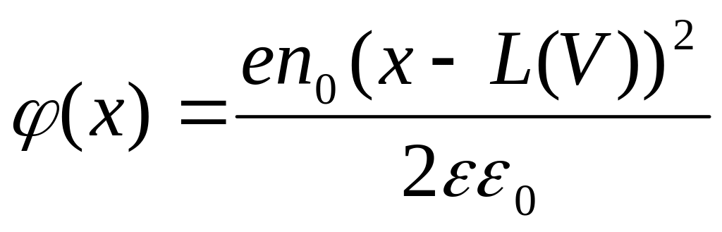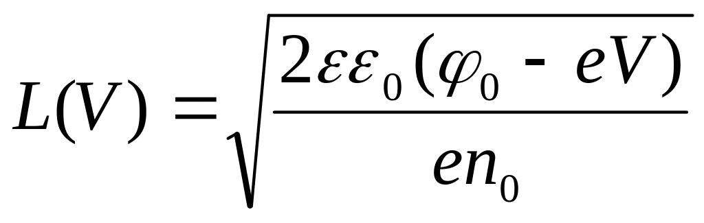 Розв’язавши це рівняння можна отримати загальний вираз для концентрації електронів в залежності від координати для області просторового заряду у наступному вигляді: