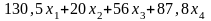 Використовуючи позначення відповідних осередків в Excel (див. мал. 1.1), формулу для розрахунку ЦФ (1.2) можна записати як суму добутків кожної з осередків, відведених для значень змінні завдання (B3, C3, D3, E3), на відповідний осередок, відведений для коефіцієнтів ЦФ (B6, C6, D6, E6), тобто
