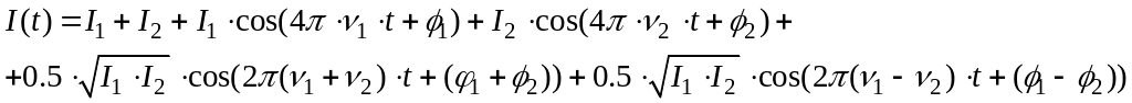 Частотну модуляцію інтерференційного сигналу забезпечують шляхом суперпозиції двох хвиль різної оптичної частоти. У цьому випадку закон зміни інтенсивності має вигляд: