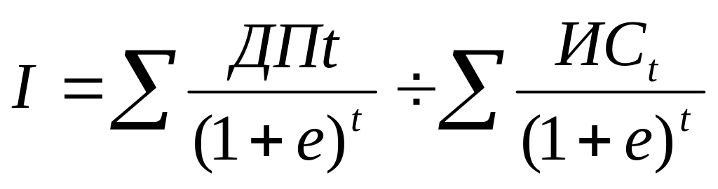 2. Индекс доходности (I) – определяется как отношение дисконтированной суммы денежного притока к дисконтированной сумме инвестированных в ИП средств.