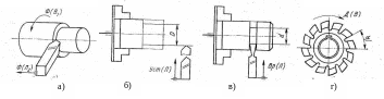а — формообразования; б — установочное; в — врезания; г — деления