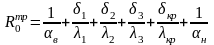Rк – термическое сопротивление ограждающей конструкции с последовательно расположенными однородными слоями, определяемое как сумма термических сопротивлений отдельных слоев по формуле (7) [12]:
