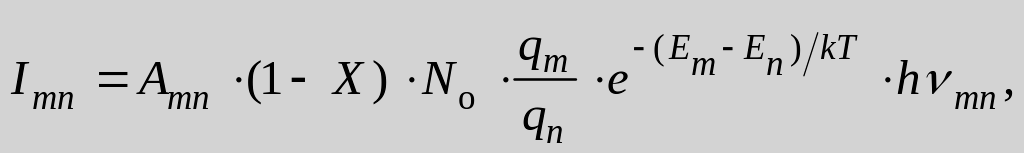 где Imn – интенсивность линии при переходе электрона с уровня т на уровень n;