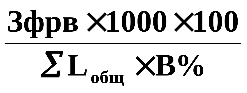 Себестоимость затрат на 1000 км пробега (по цеху, участку, зоне, отделению) определяется по формуле: