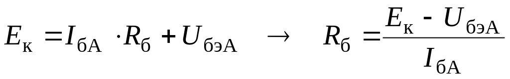 Рассмотрим следующую схему (рис.2). Здесь резистор Rк задает нагрузочный режим, т.е. нагрузочную прямую, на которой выбираем рабочую точку "А". Составим уравнение равновесия напряжений по второму правилу Кирхгофа для входной цепи: