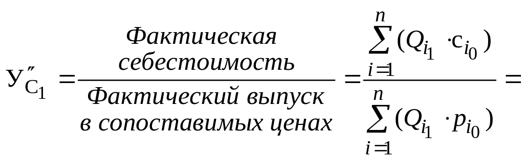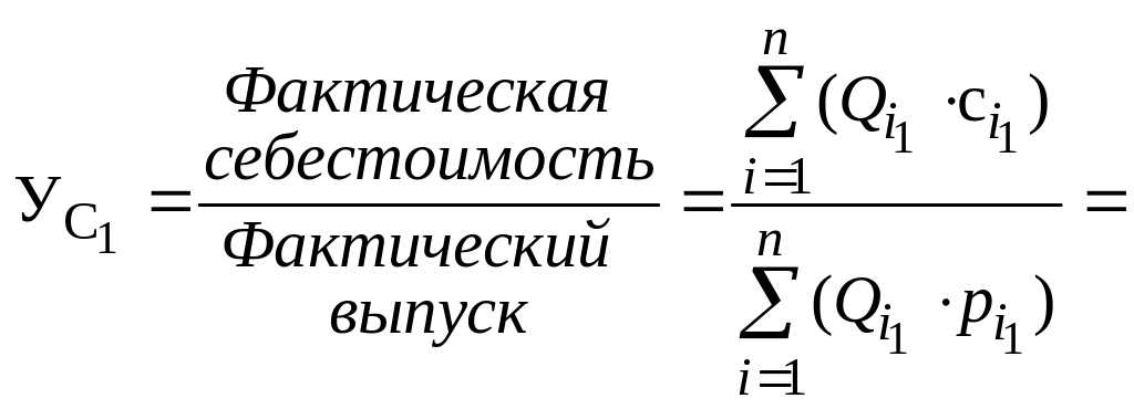 Как уже указывалось, одно из направлений анализа себестоимости — анализ себестоимости единицы продукции или расходов на один рубль товарной продукции. Независимо от типа и условий производства, себестоимость товарной продукции можно представить как сумму произведений себестоимости единицы продукции по каждому наименованию выпускаемой продукции и количества изделий, а объем товарной продукции — как произведение количества продукции по каждому изделию на соответствующие им цены. Себестоимость 1 руб. товарной продукции определяется по формуле
