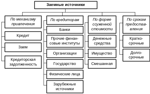 Рис. 12.4. Классификация заемных источников финансирования организации