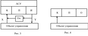 На вход системы управления от объекта управления (ОУ) поступают входные сигналы датчиков, расположенных на объекте управления, воспринимаемые подсистемой преобразования "П". В подсистеме "П" входные сигналы преобразуются в форму, необходимую для работы операционного блока "О". В операционном блоке происходит преобразование входной информации в соответствии с алгоритмами, хранящимися в его памяти. Цель управления достигается выработкой сигналов управления и их воздействием через исполнительную систему "И" на объект управления. Более детально эта схема может быть представлена следующей структурой (рис. 2) [1]: