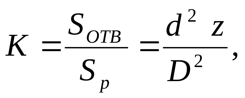 Sp - плошадь решетки, м2; SOTB — суммарная площадь отверстий, м2; z — число отверстий в решетке.
