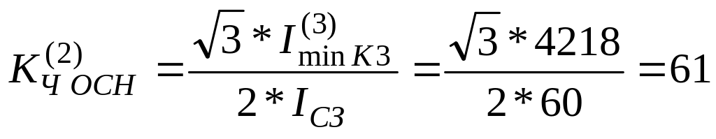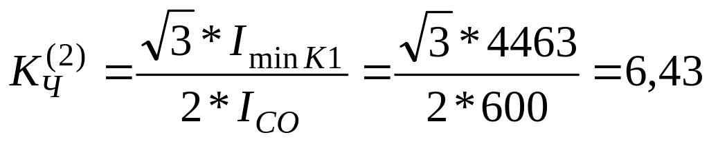 Коэффициент чувствительности отсечки при двухфазном к.з. в месте установки защиты: