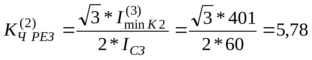 Коэффициент чувствительности удовлетворяет требованиям [1,ПУЭ], соответственно 1,5 и 1, 25.