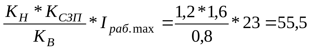 IСЗ = КН * КА * КОДН * fi * Imax = 1,2 * 1 * 1 * 0,1 * 828 = 100 А, (3.18)