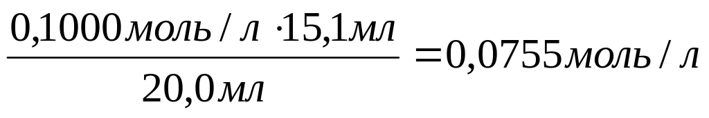 Как с большей достоверностью видно из рис.3, точка эквивалентности соответствует 15,1 мл добавленного 0,1000 М раствора NaOH.Исходя из основного уравнения титриметрии: