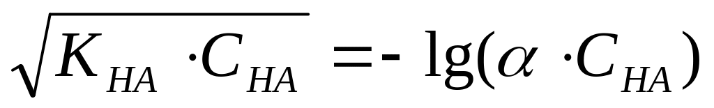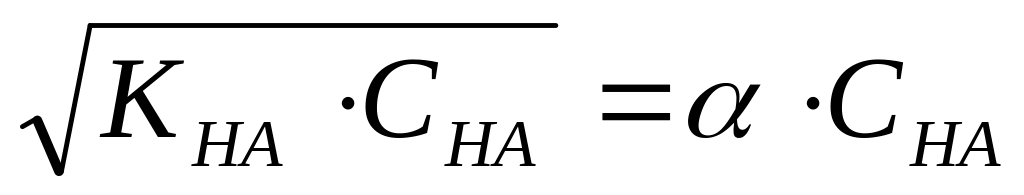 Как видно, [H+]=[A-]; кроме того, если степень диссоциации α мала (<5%),можно допустить, что [HA]= CHA.. Отсюда следует