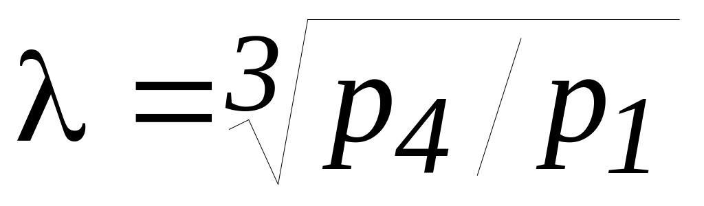 Пример 32. Объемная подача идеального трехступенчатого компрессора 0,03 м3/с (при всасывании). Начальные параметры воздуха: 27С и 0,1 МПа. Сжатие происходит по политропе с показателем 1,2 до давления 6,4 МПа. Найти теоретическую мощность компрессора.