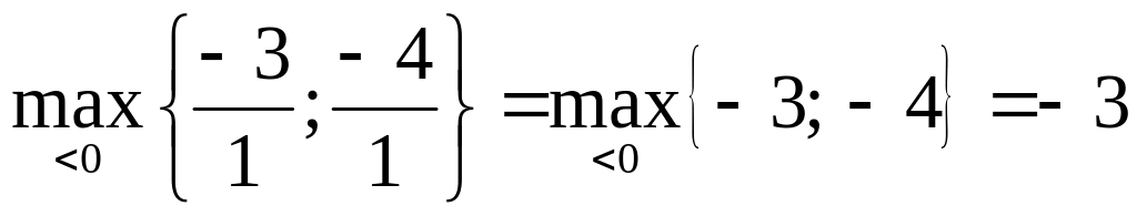 Находим максимальное отношение среди отношений элементов в строке целевой функции к соответствующим элементам разрешающей строки